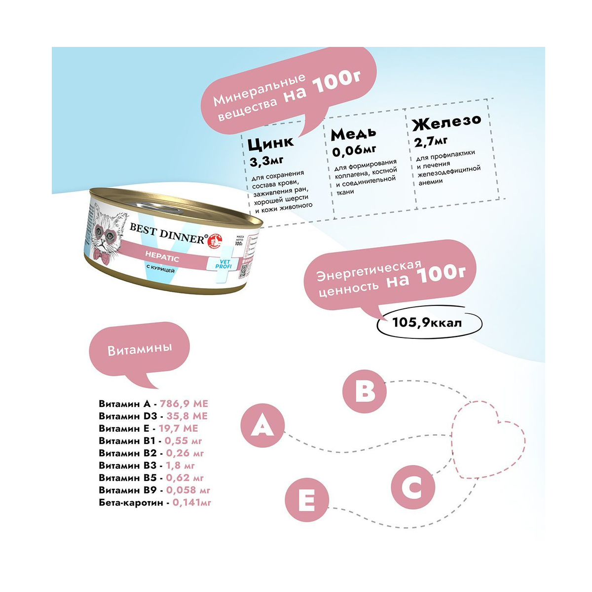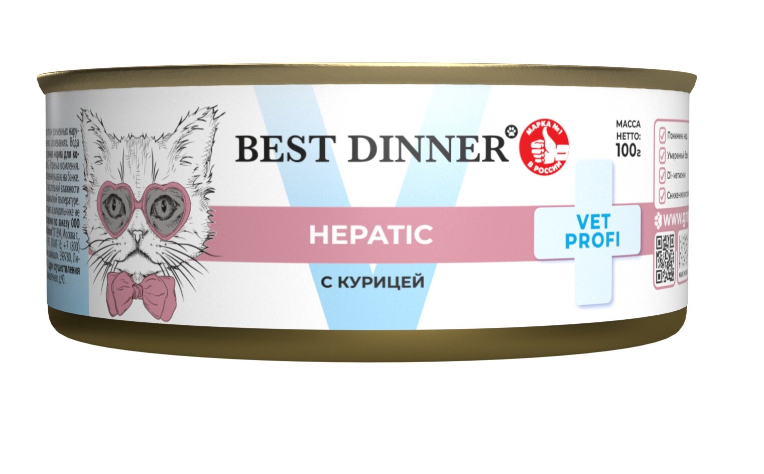 Купить Влажный диетический корм Best Dinner VET PROFI Hepatic для кошек при заболевании печени Курица 12шт х 100г