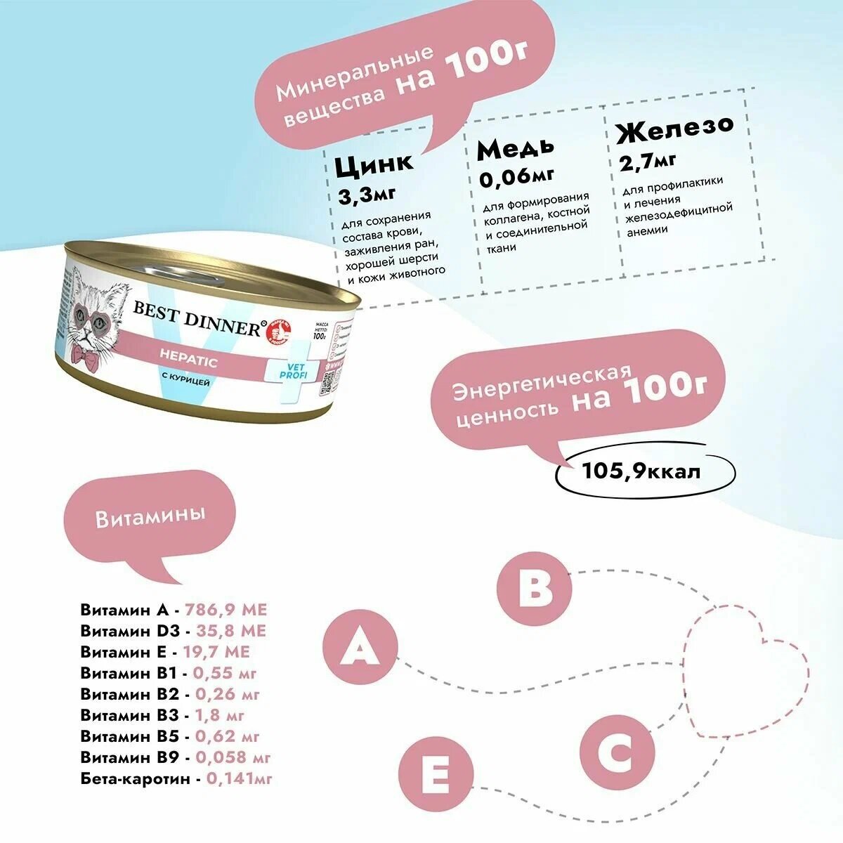 СохранитьВлажный диетический корм Best Dinner VET PROFI Hepatic для кошек при заболевании печени Курица 12шт х 100г интересное: