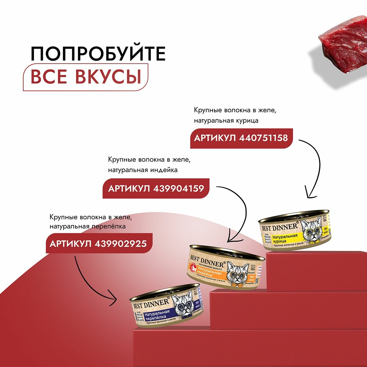 Консервированный корм для кошек Best Dinner «Натуральная говядина» 3шт. х 100 г (кусочки в желе)