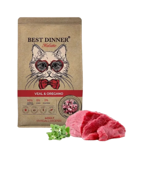 Сухой гипоаллергенный корм для кошек BEST DINNER (Бест Диннер) Holistic Hypoallergenic Adult Cat Veal & Oregano, с телятиной и орегано, 10 кг