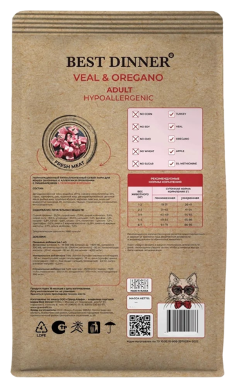 Ниже Вы можете прочитать отзывы на Сухой корм Best Dinner Holistic для кошек с телятиной и орегано, 400 гр, ознакомится с подробными характеристиками, посмотреть интересные обзоры и фотографии на Сухой корм Best Dinner Holistic для кошек с телятиной и орегано, 400 гр.