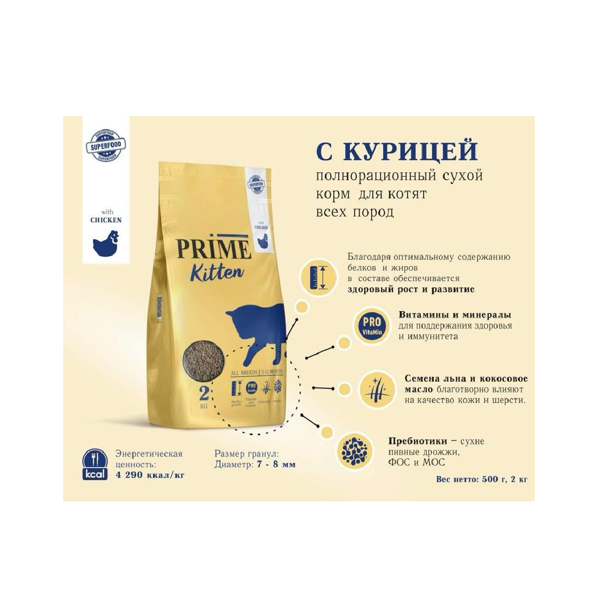 PRIME KITTEN -сухой корм для котят от 2 до 12 месяцев, с курицей -2 кг