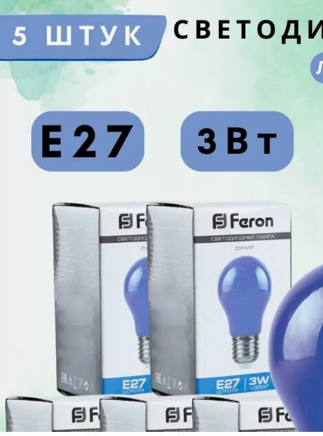 Купить Лампа FERON LB-375 E27, 3W, синяя, матовая, 5 шт