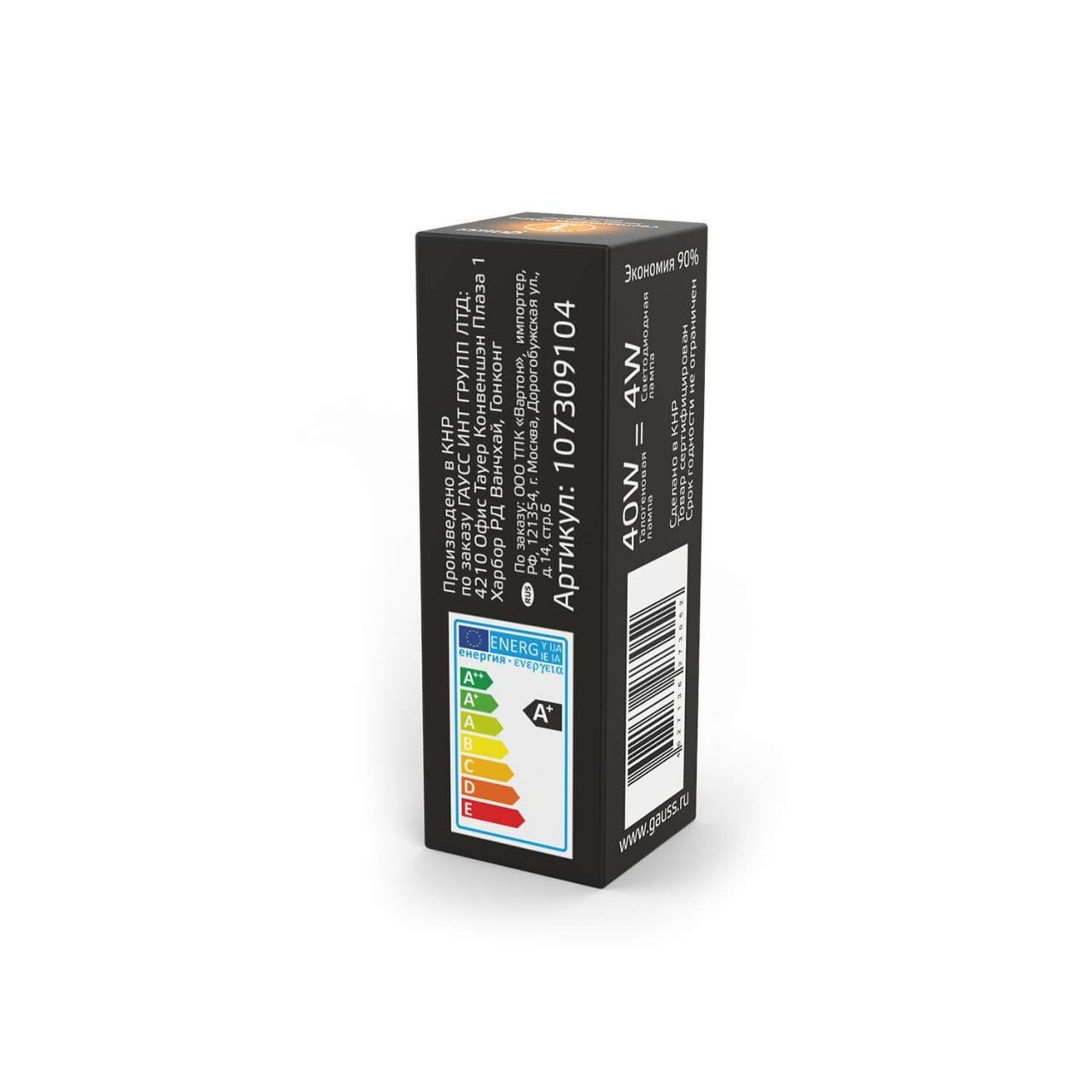 Лампа светодиодная Black 4Вт капсульная 2700К тепл. бел. G9 400лм 220В керамика GAUSS 107309104 (1 шт.)
