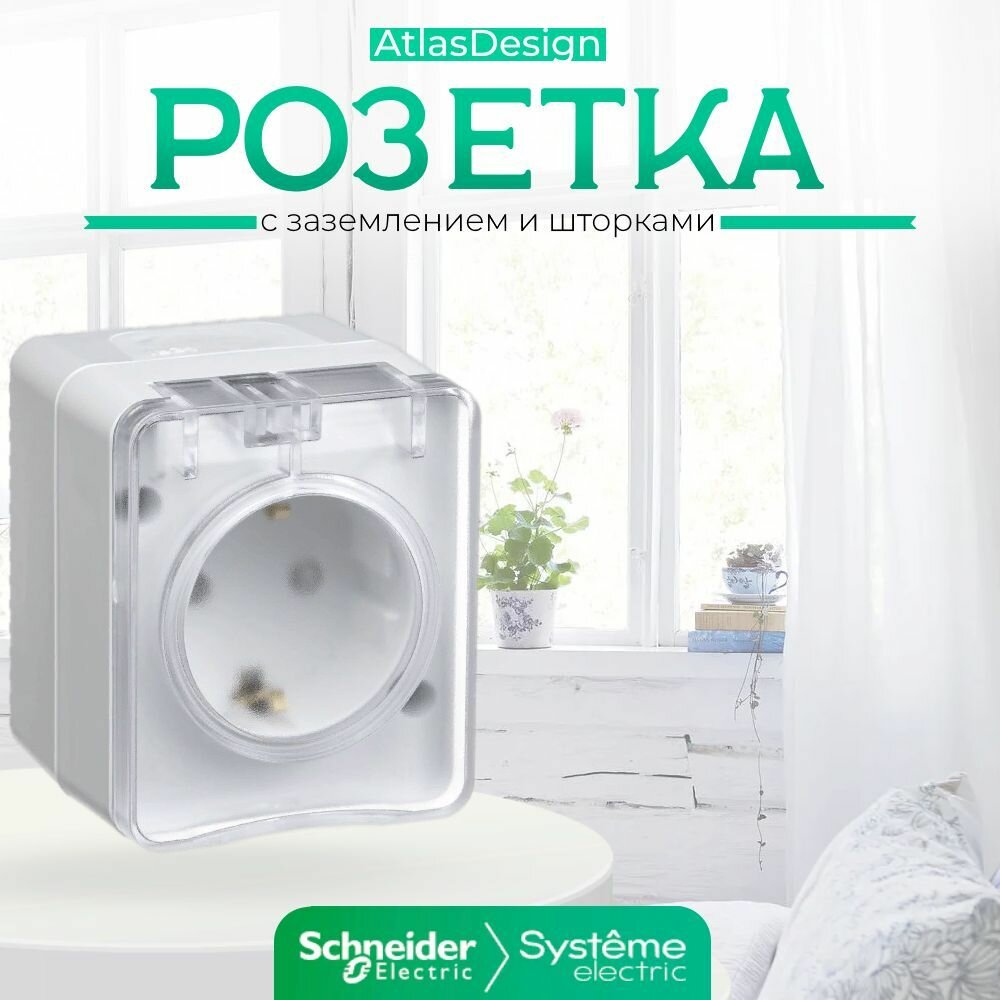 СохранитьРозетка с заземлением с защитными шторками Schneider Electric Atlas Design Profi54, на винтах, белый интересное: