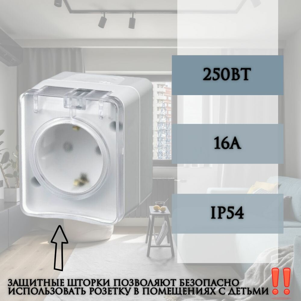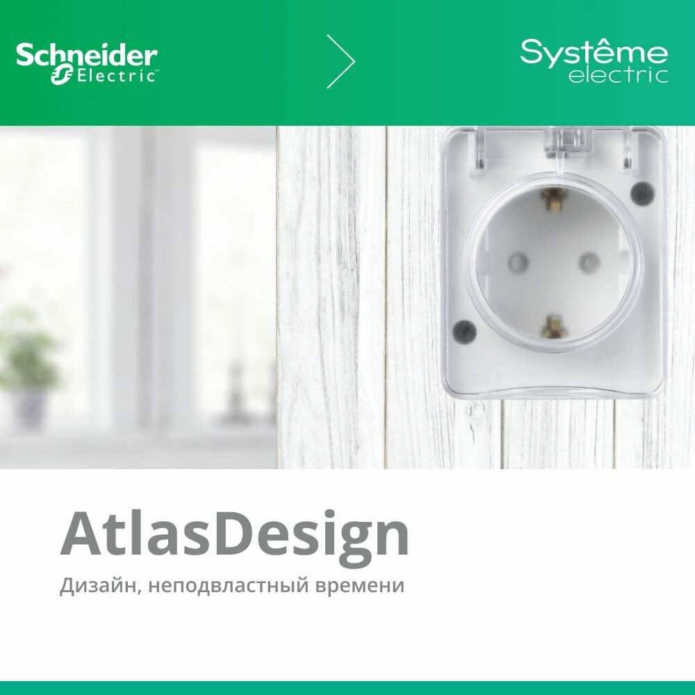 Розетка SYSTEME ELECTRIC (SCHNEIDER ELECTRIC) SCHNEIDER ELECTRIC AtlasDesign PROFI IP54 O/У с заземлением, со шторками, 16А, 250B, Белый, ATN540145