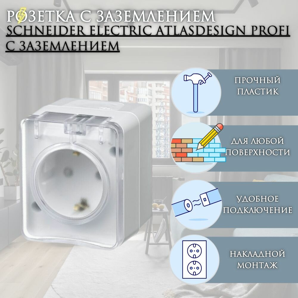 Розетка 1-м ОП AtlasDesign Profi54 16А IP54 250В с заземл. защ. шторки бел. SchE, SCHNEIDER ELECTRIC ATN540145 (1 шт.)