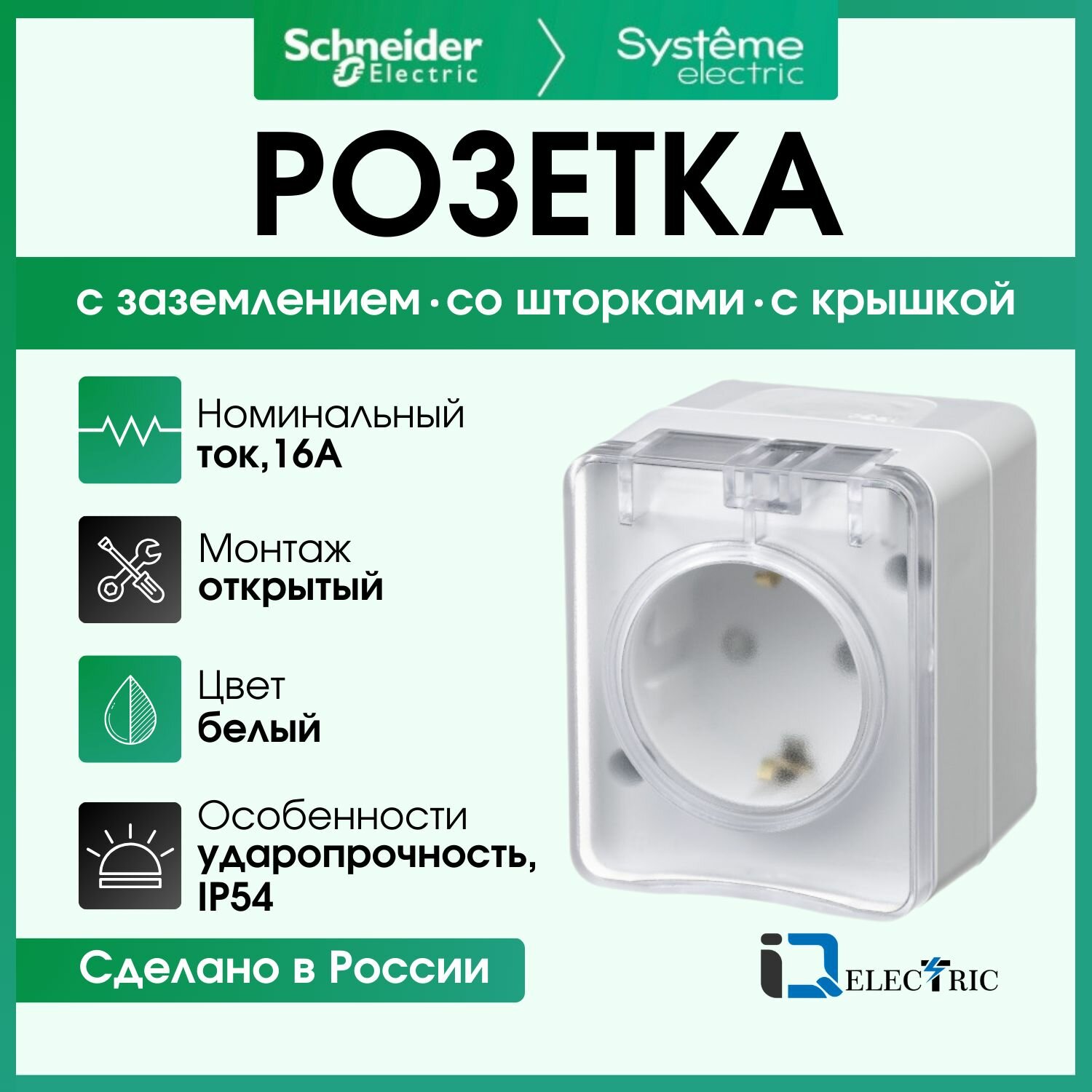 10шт. - AtlasDesign Profi54 розетка с заземлением со шторками IP54 16А 250B, белый, Россия / Systeme Electric; арт. ATN540145; оригинал / - комплект 10шт