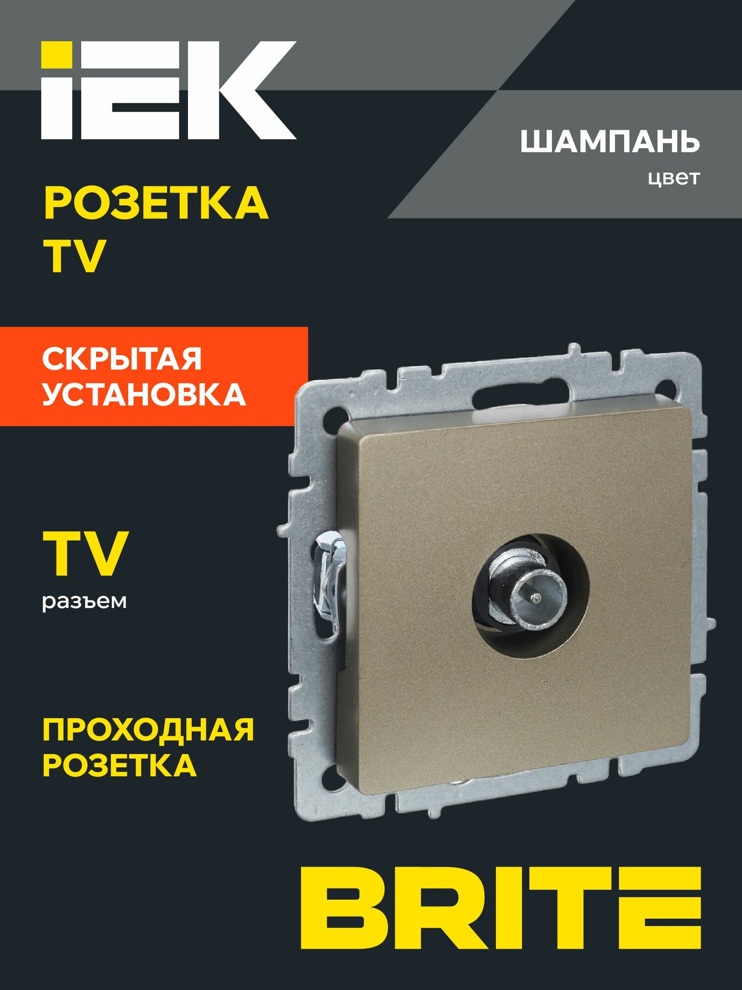 Купить BRITE Розетка TV проходная РТВ10-0-БрШ шампань , IEK BR-A10-P-K37 (1 шт.)