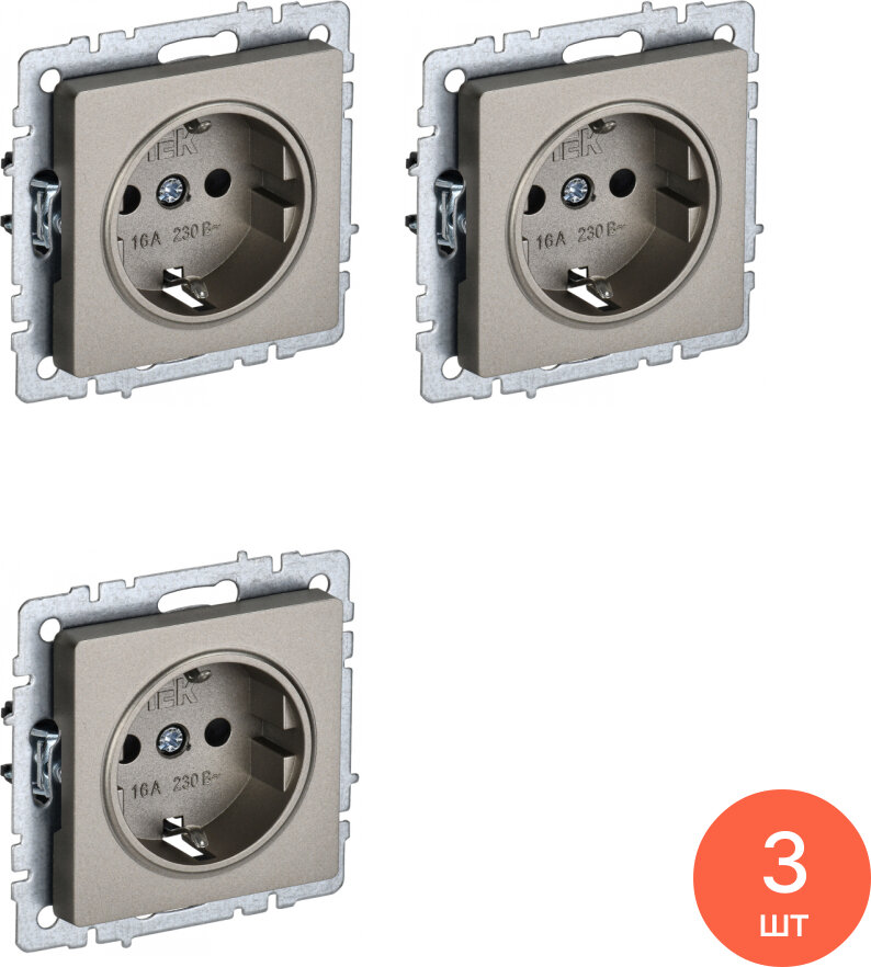 BRITE Розетка с заземлением с защитными шторками 16А РС14-1-0-БрШ шампань , IEK BR-R14-16-K37 (1 шт.)