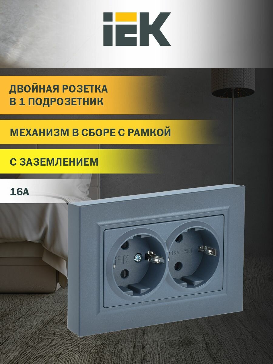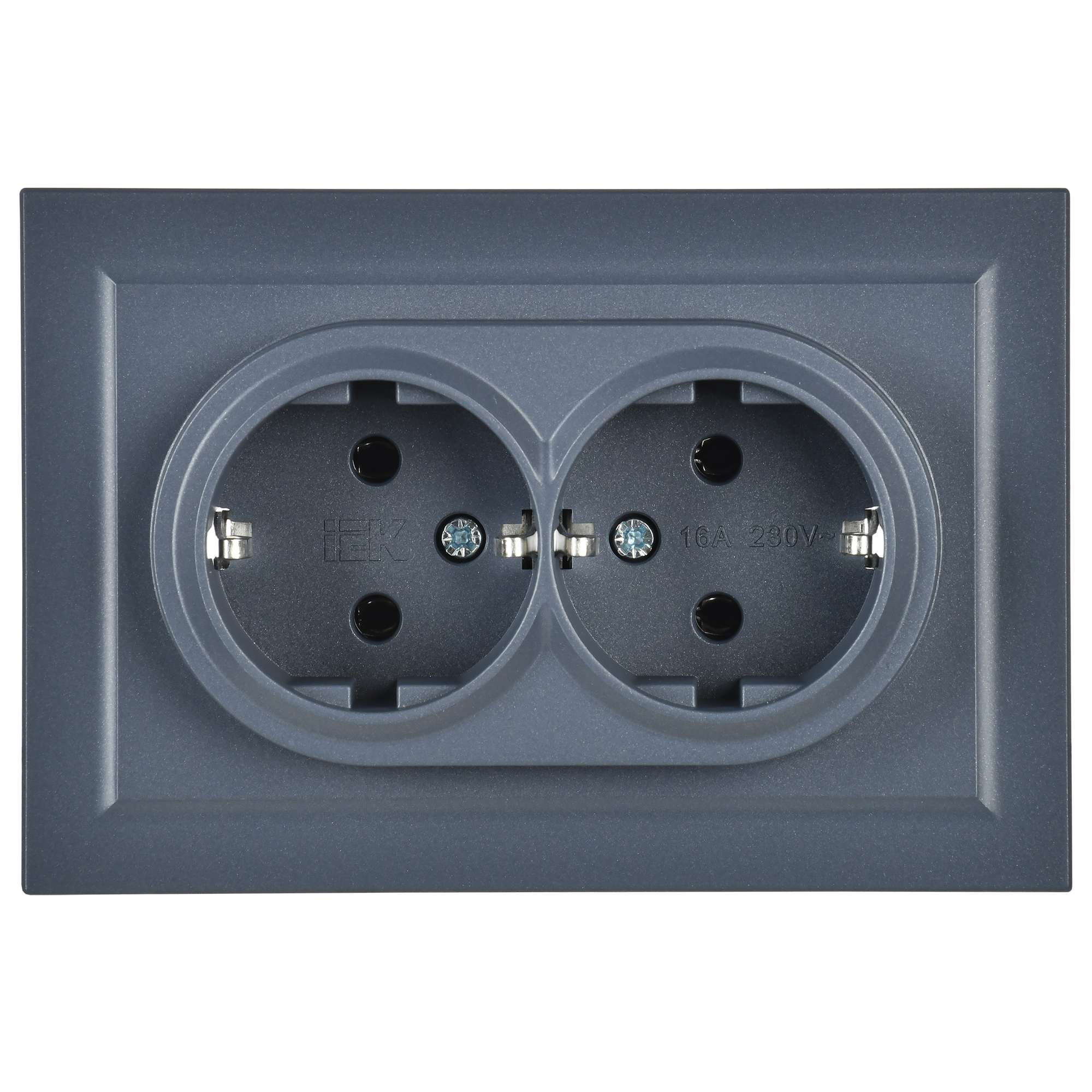 BRITE Розетка с заземлением с защитными шторками 16А РС14-1-0-БрС сталь , IEK BR-R14-16-K46 (1 шт.)