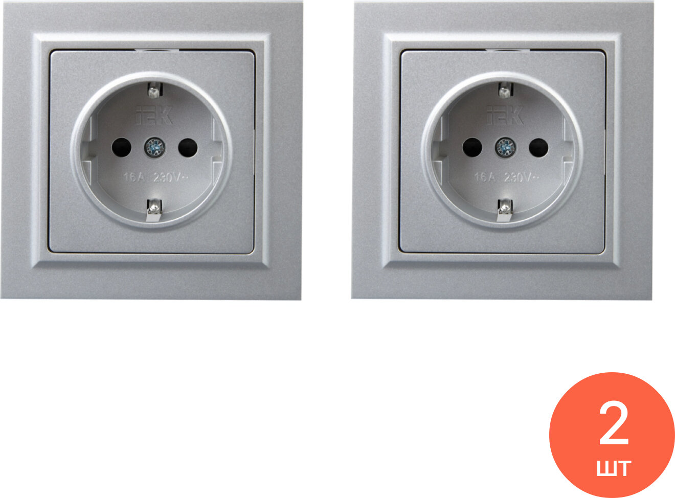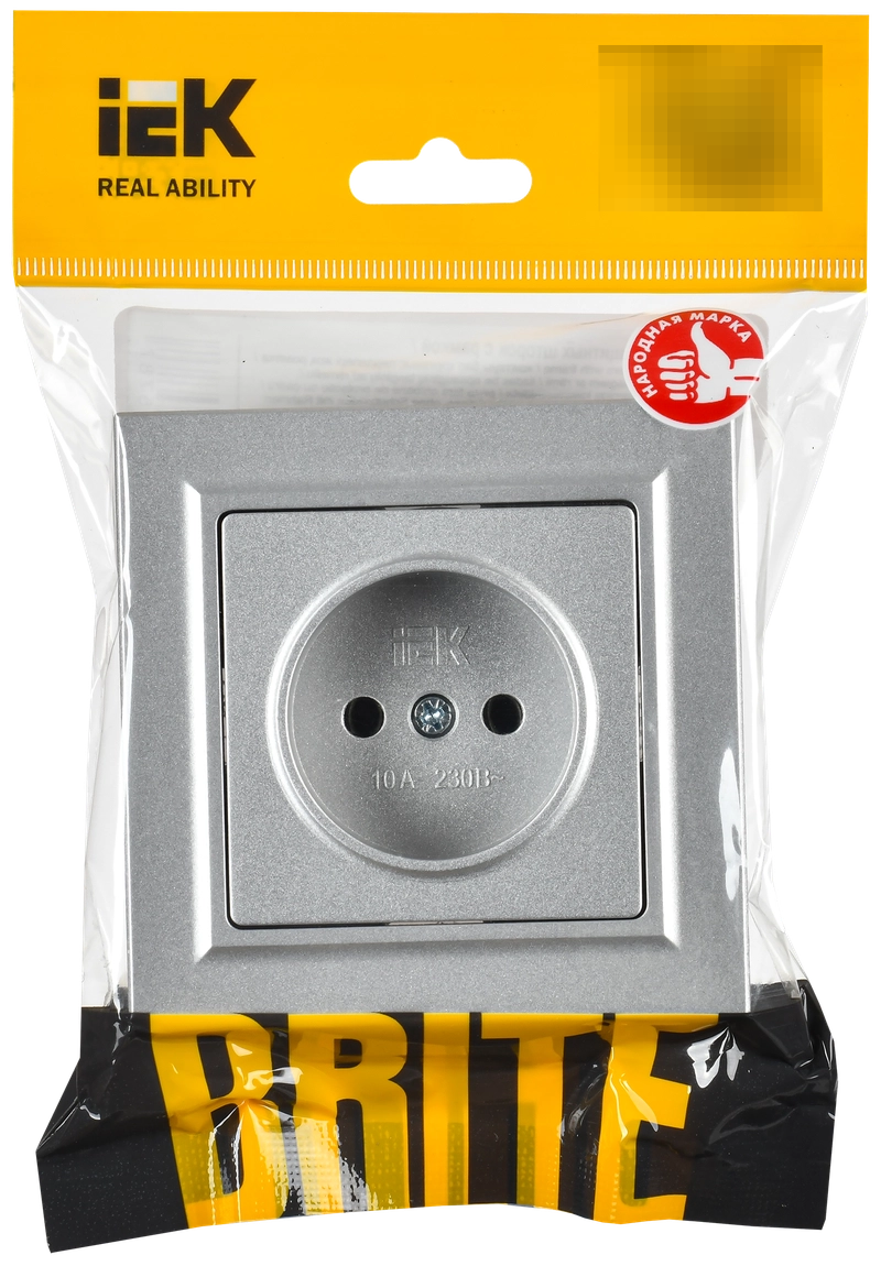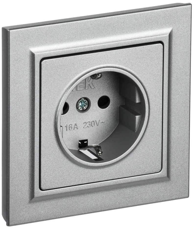 BRITE Розетка с заземлением с защитными шторками 16А РС14-1-0-БрА алюминий , IEK BR-R14-16-K47 (1 шт.)