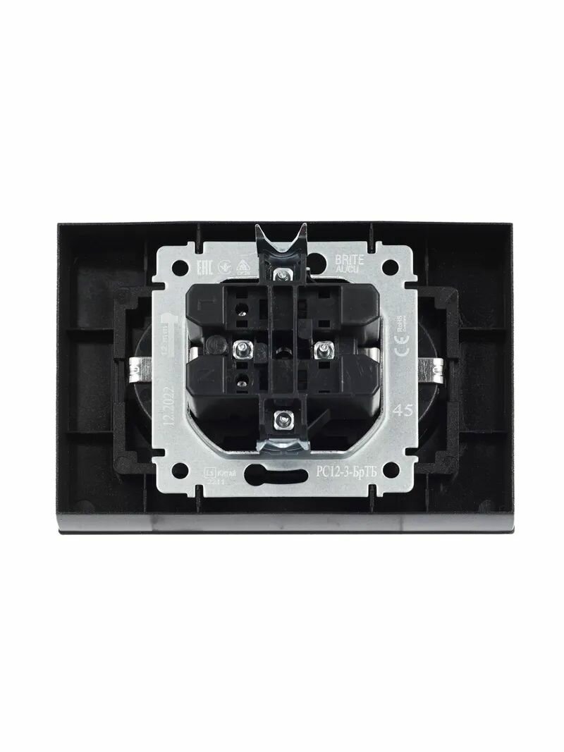 BRITE Розетка 1-местная с заземлением с защитными шторками 16А в сборе РСР14-1-0-БрЧ черный, IEK BRR1416K02F (1 шт.)