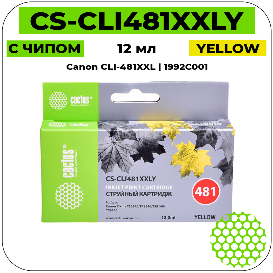 Купить Картридж струйный Cactus Cs-cli481xxly желтый (12мл) для Canon Pixma TR7540/TR8540/TS6140/TS8140 Cs- .