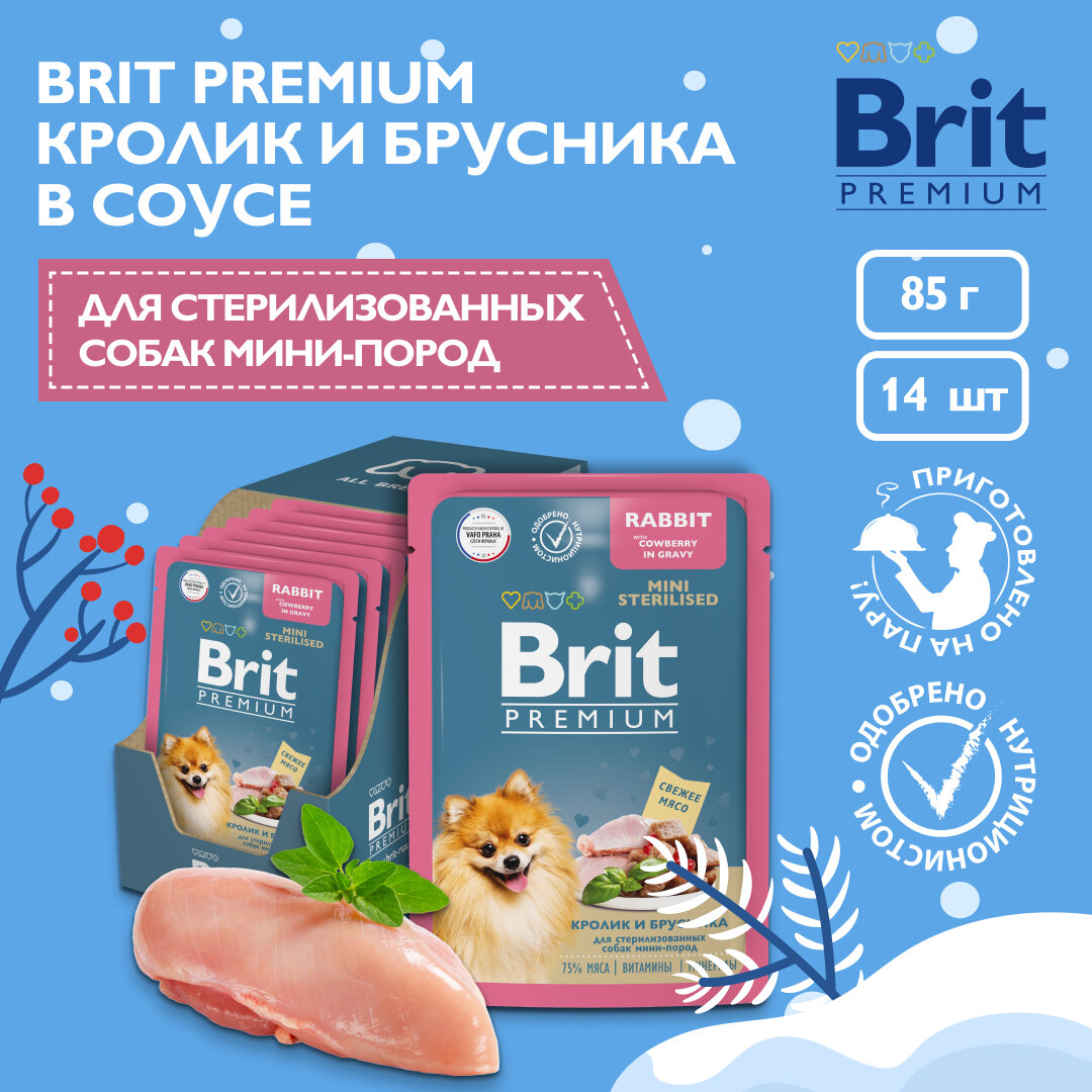 Влажный корм для собак Brit Premium для взрослых стерилизованных собак мини пород кролик и брусника в соусе, пауч 14 уп. х 85 г (для мелких пород)