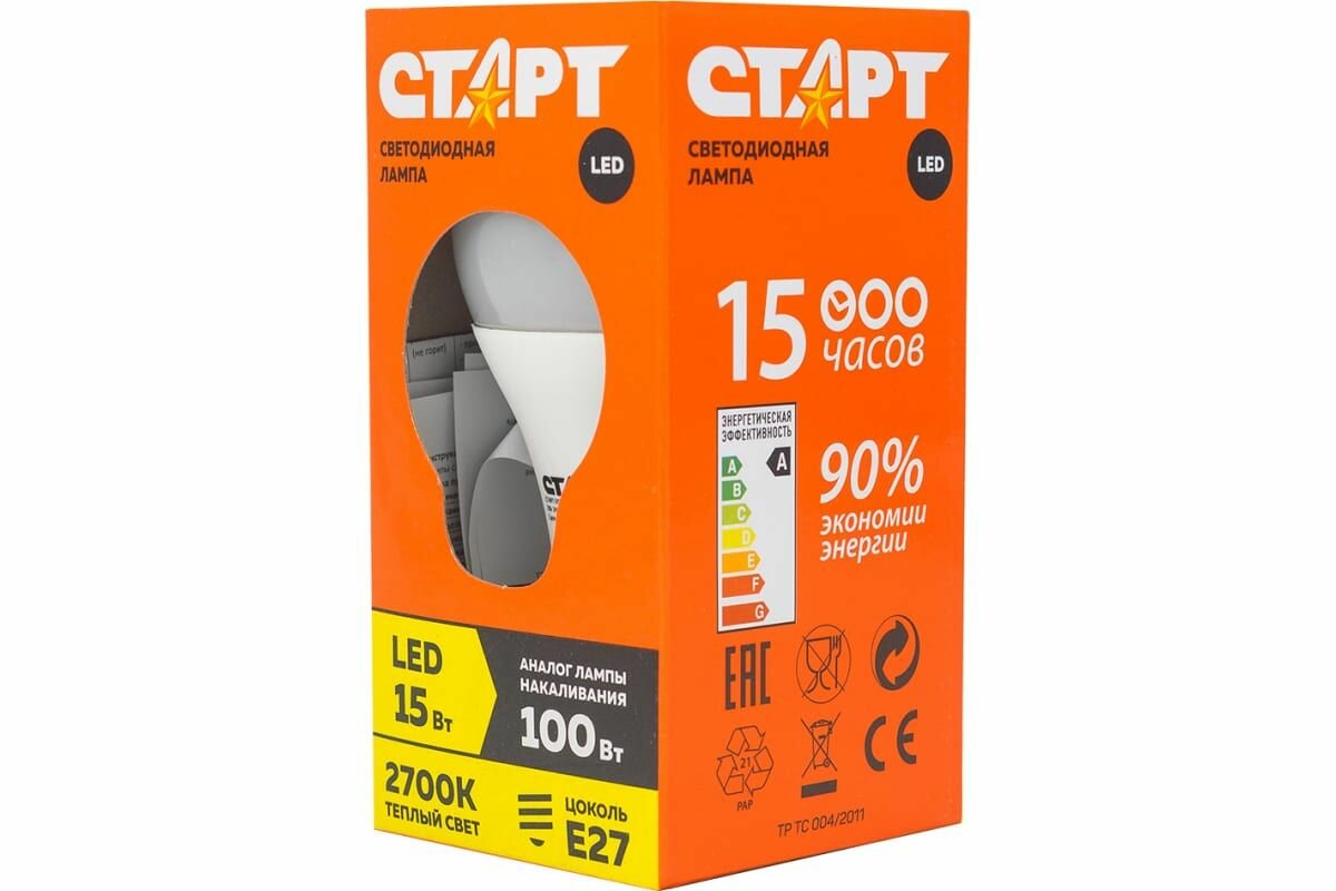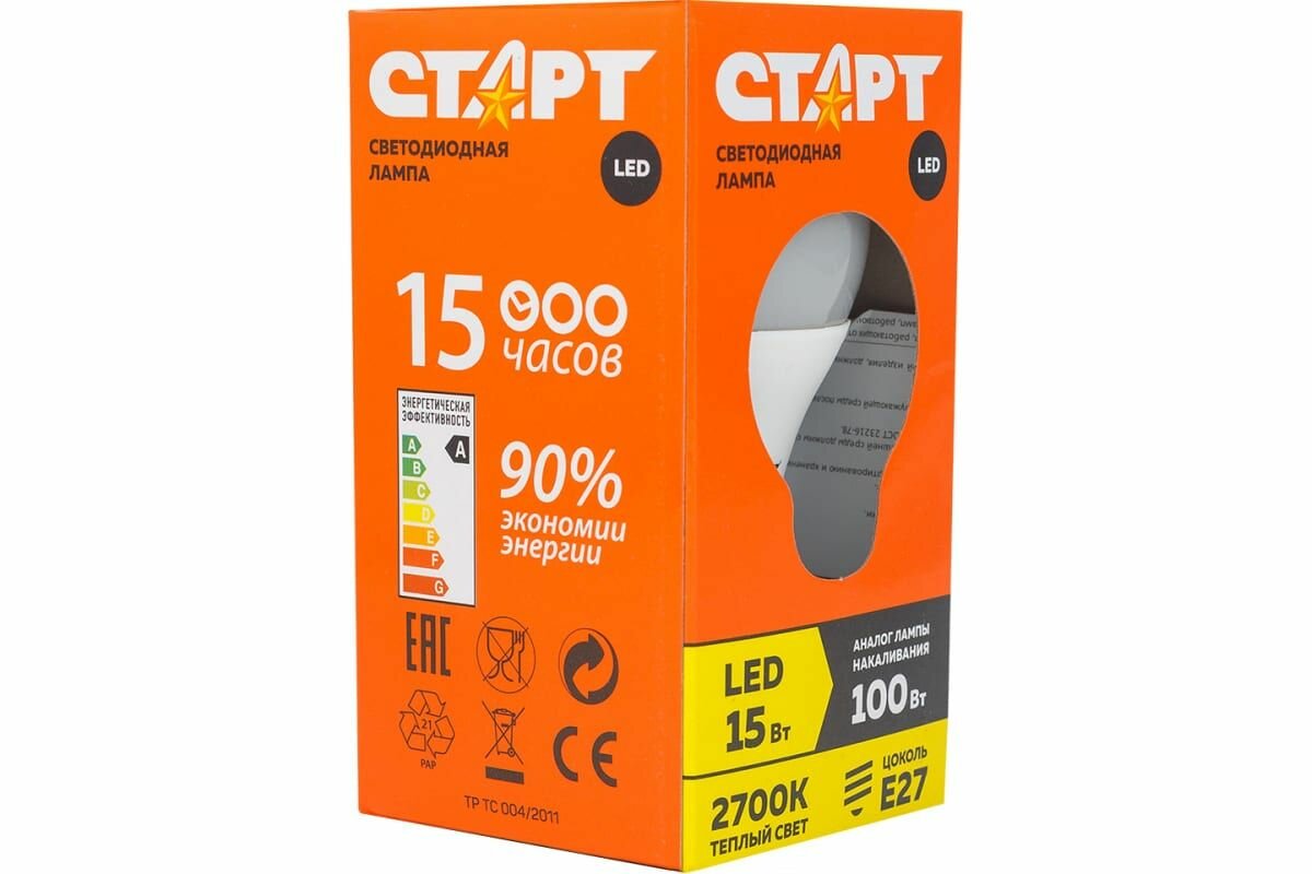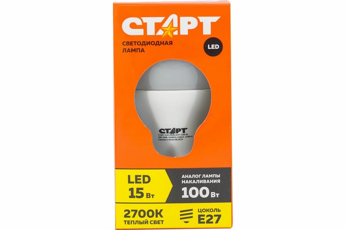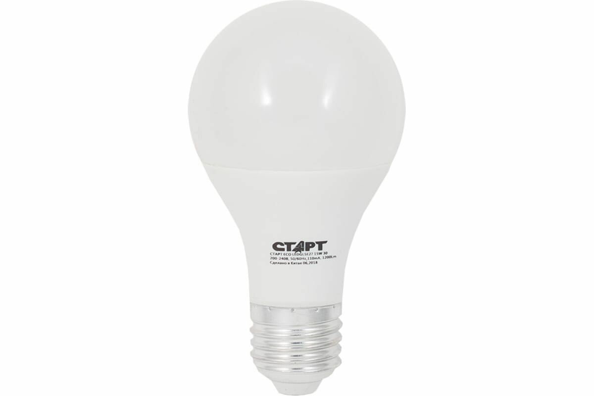 Лампа светодиодная Старт LED, серия ЭКО 15W30, тип А груша E27, 2700К, теплый свет, 15000 ч