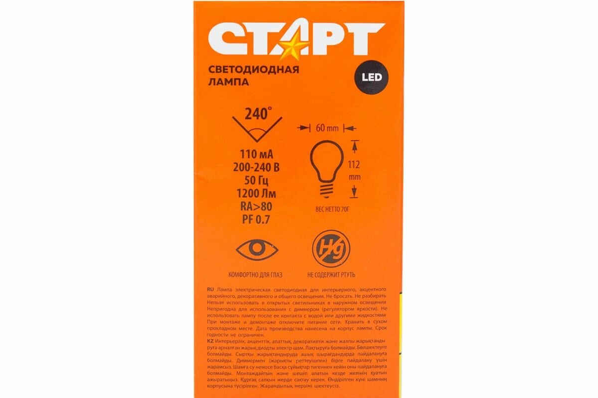 | Дополнительная информация | угол светового пучка: 240º |