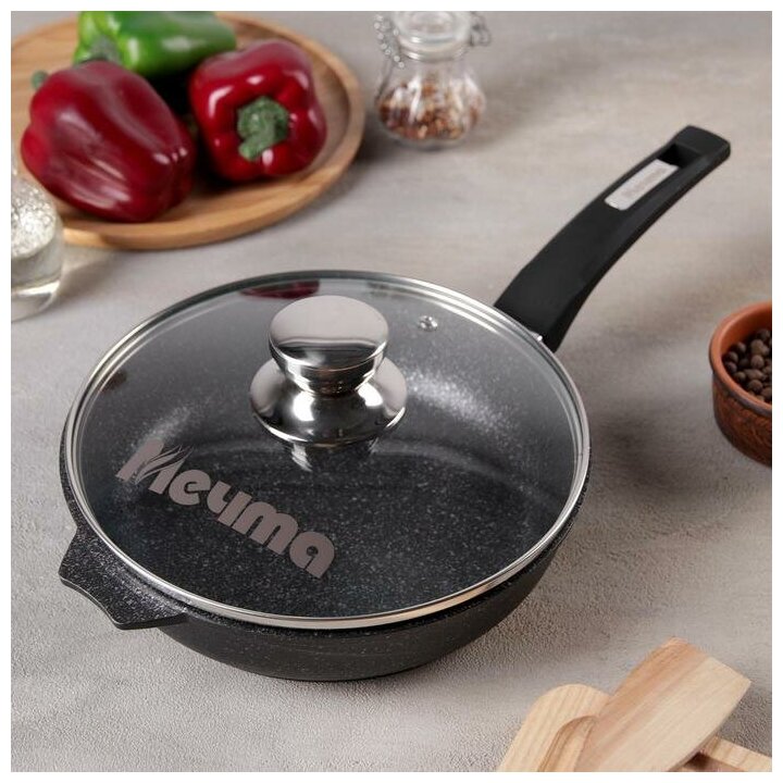 Сковорода Мечта "Гранит Star", 22 см, стеклянная крышка, антипригарное покрытие