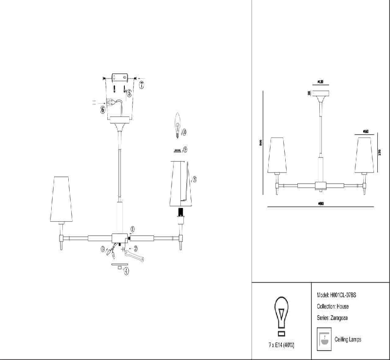Люстра потолочная Maytoni House H001CL-07BS 7x40Вт E14