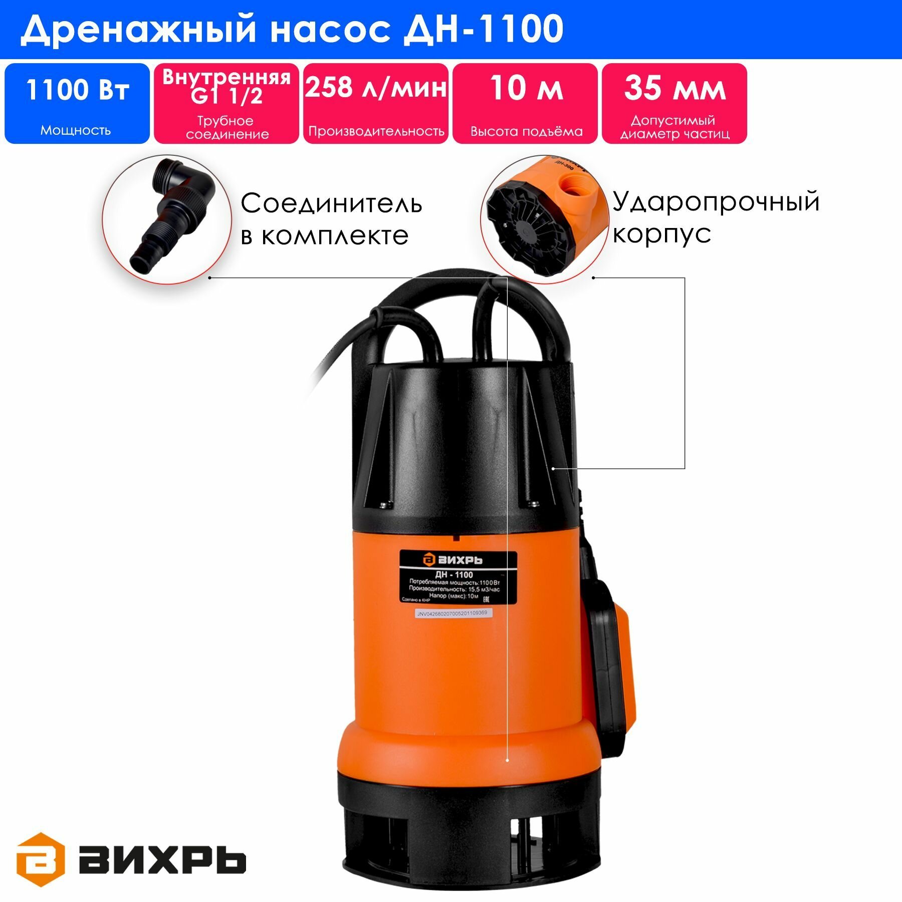 Дренажный насос вихрь ДН-1100 (1100 Вт)