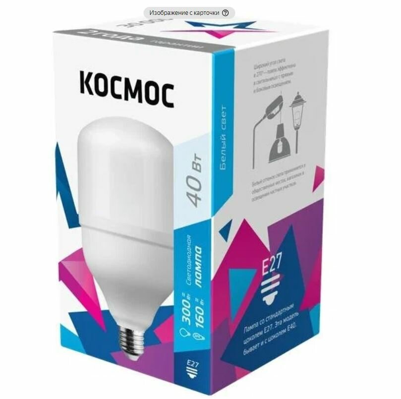 Светодиодные лампы космос Лампа светодиодная HВтLED 40Вт 220В E27 4500К Космос LksmHWLED40WE2745