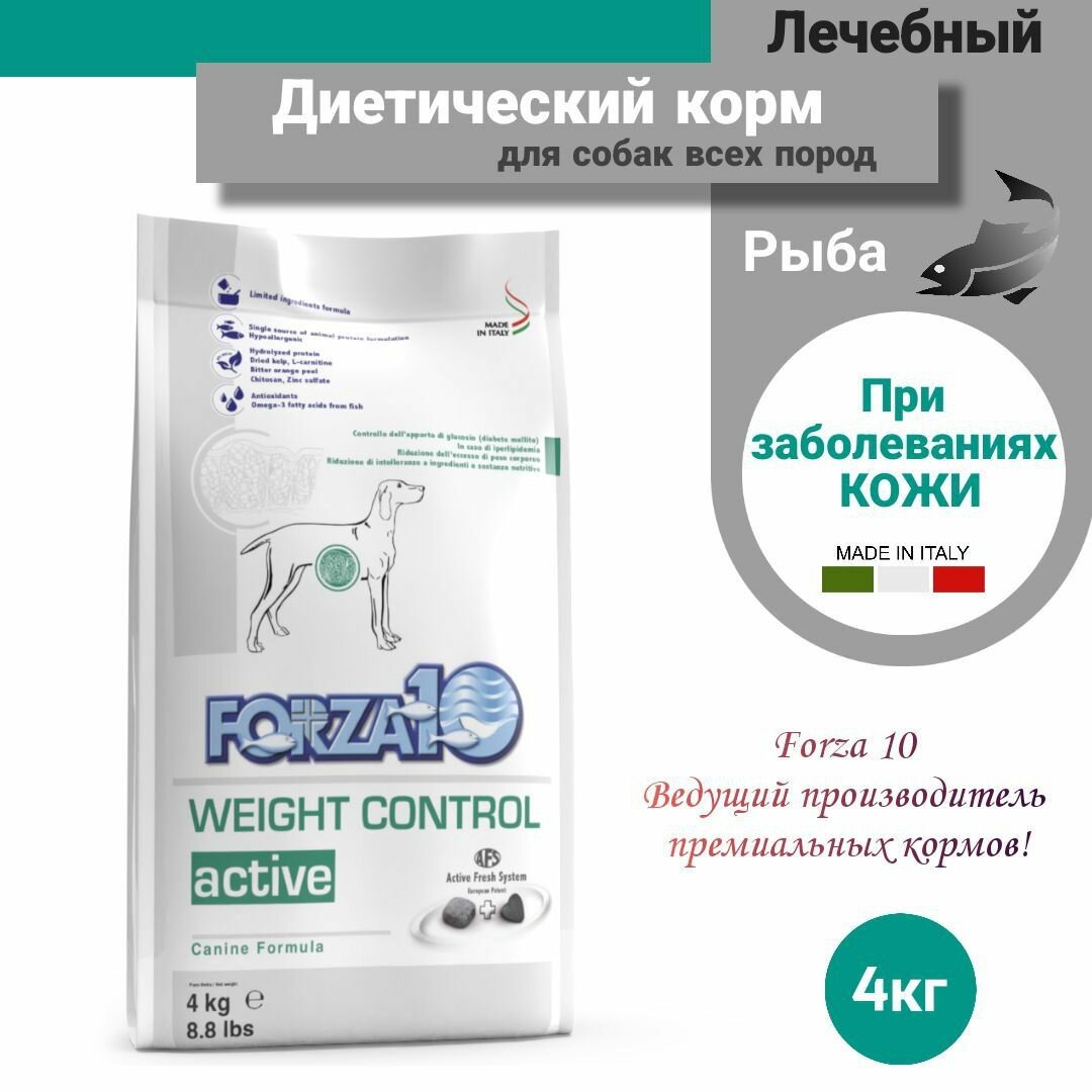 Сухой корм Forza10 ACTIVE WEIGHT CONTROL al Pesce, для взрослых собак, страдающих лишним весом с рыбой, 4кг