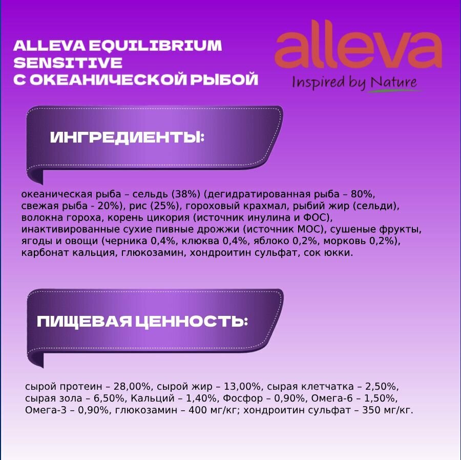 Корм Аллева Эквилибриум Сенситив для взрослых собак мелких и средних пород, с океанической рыбой, 2 кг