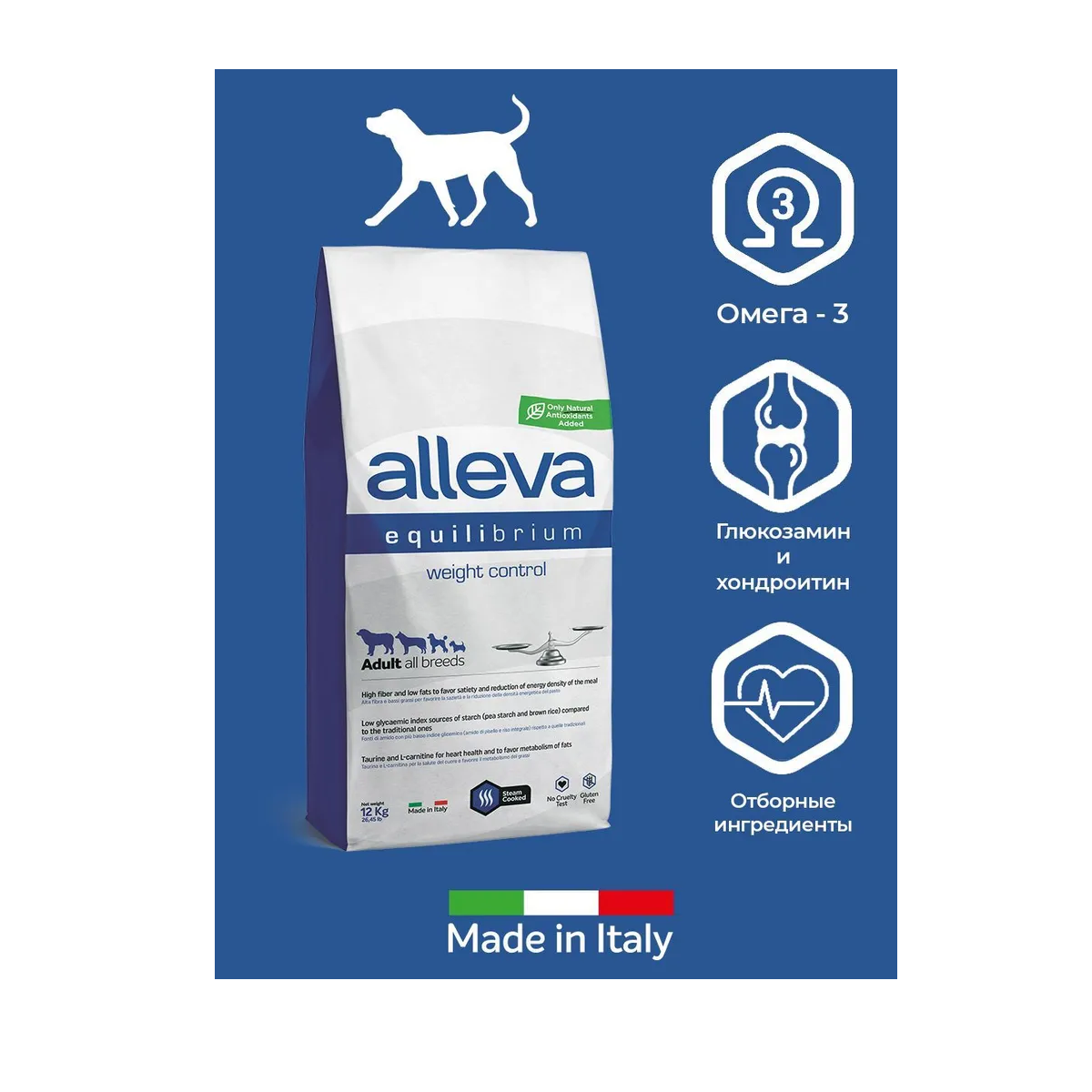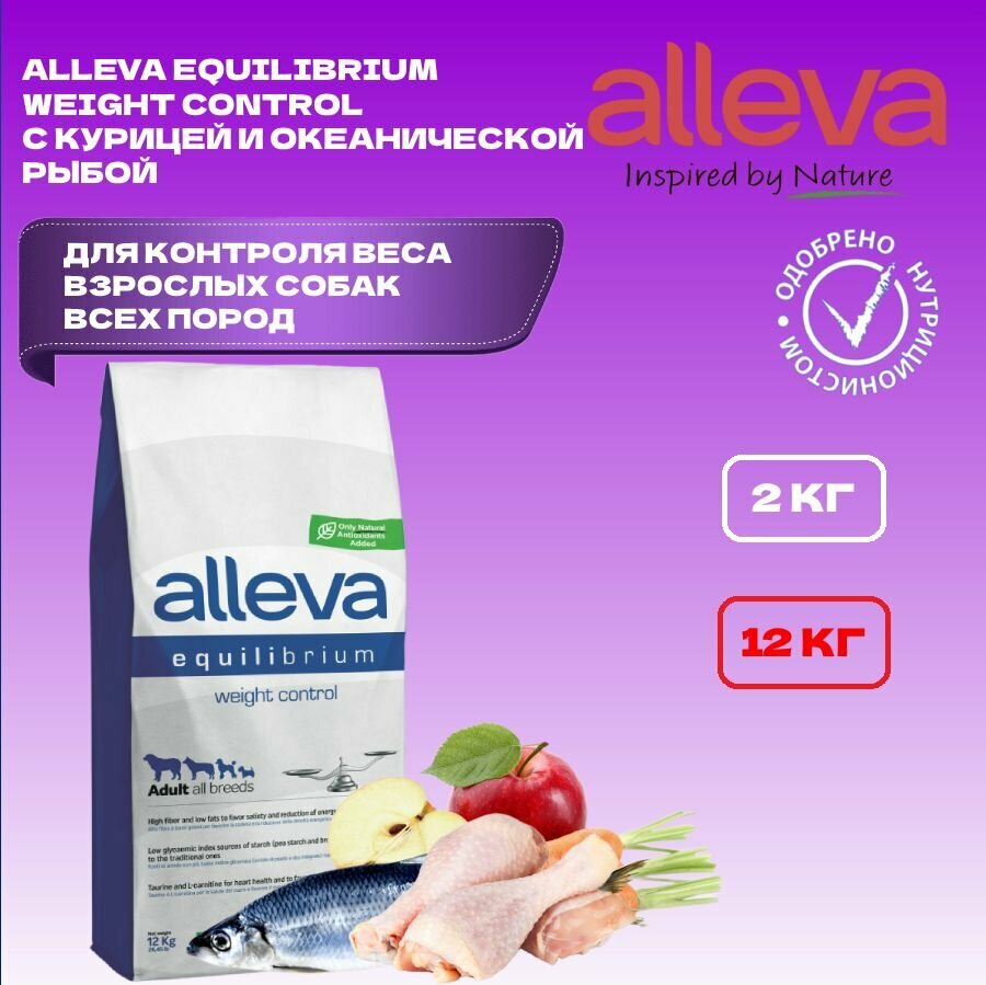 Сухой корм ALLEVA EQUILIBRIUM WEIGHT CONTROL ADULT ALL BREEDS, для взрослых собак всех пород, склонных к набору веса, 12 кг