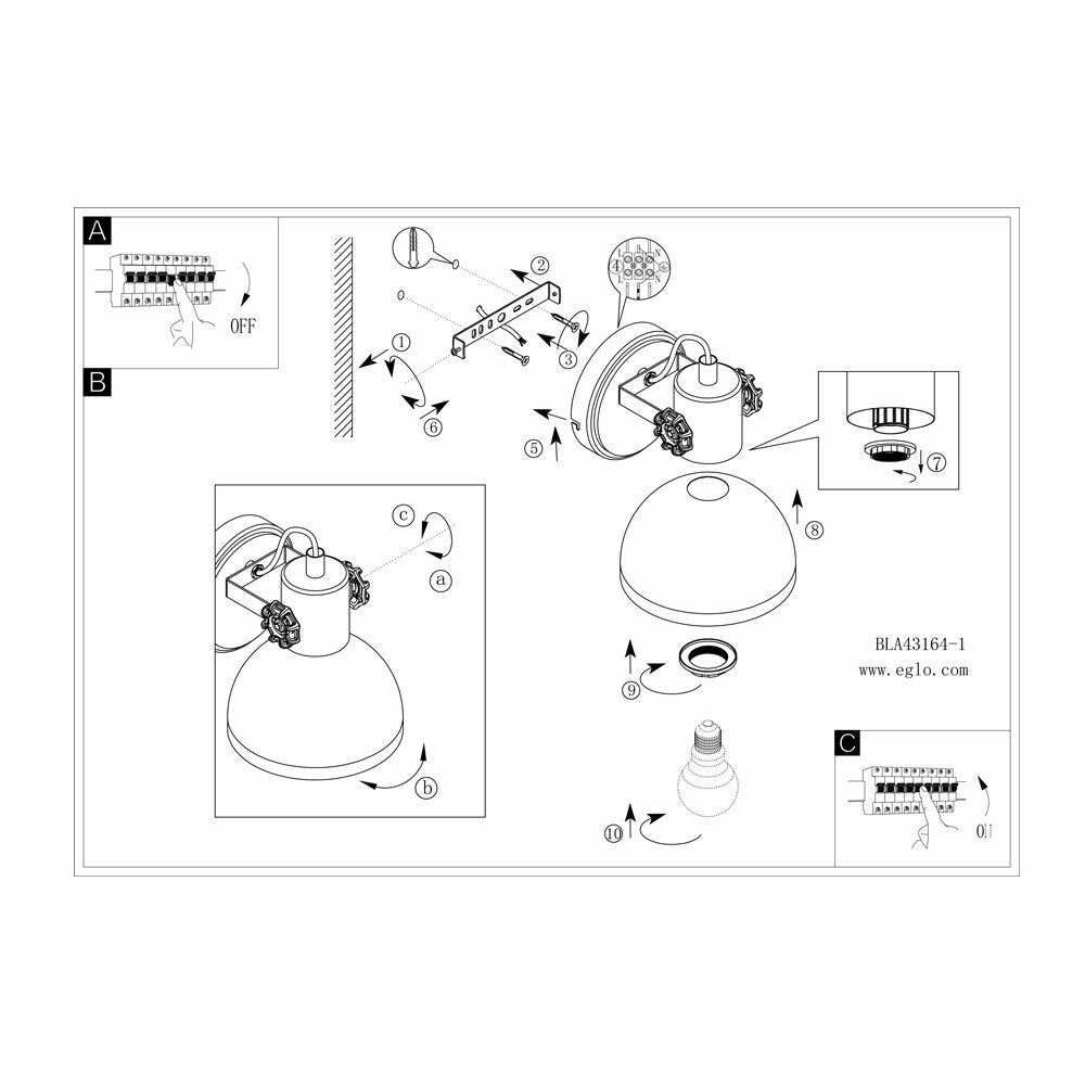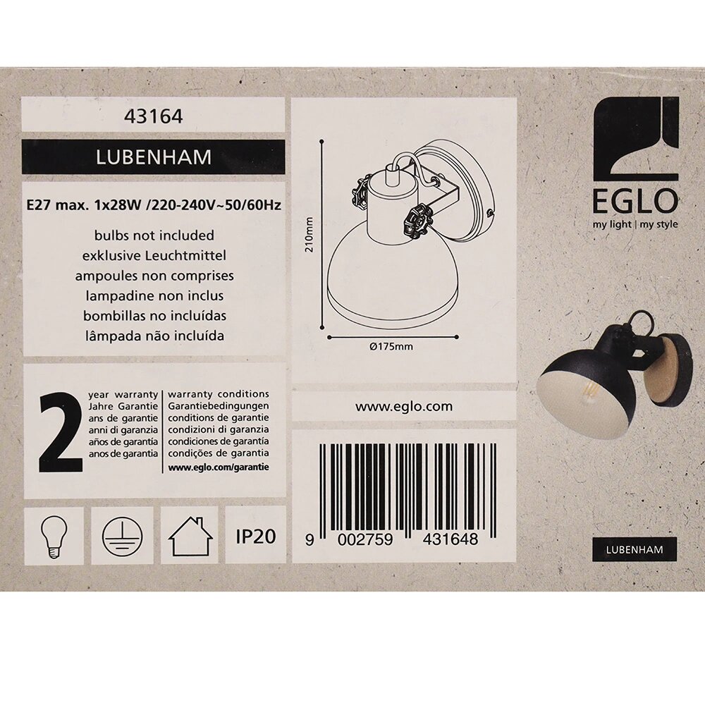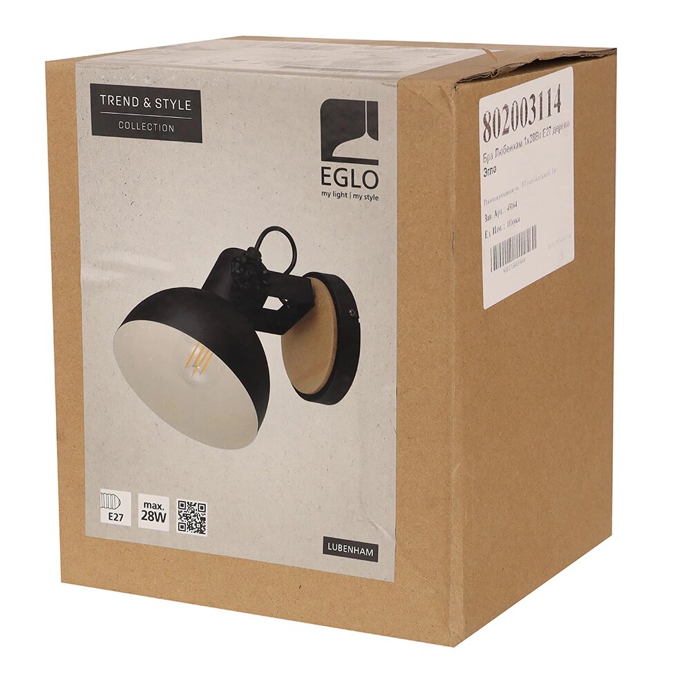 Настенное бра Eglo Lubenham 43164, E27, кол-во ламп:1шт., Черный интересное: