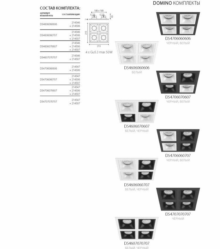 D54606070607 Светильник DOMINO QUADRO МR16 (214546+214506+214507+214506+214507)