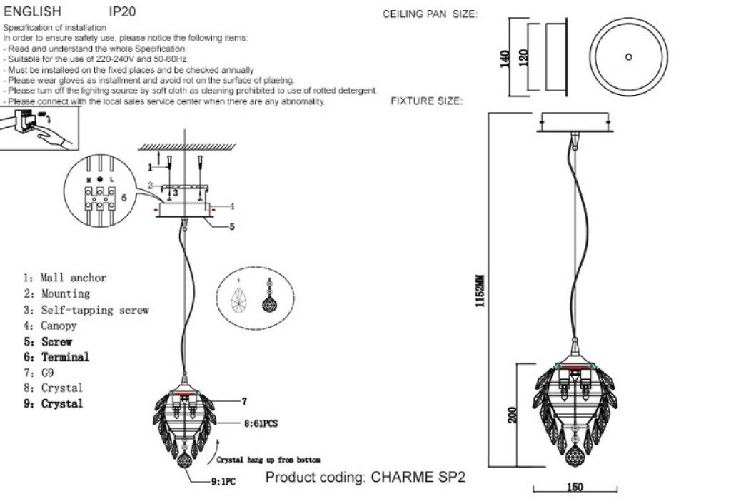 Светильник подвесной Crystal Lux CHARME SP6 CHROME/TRANSPARENT