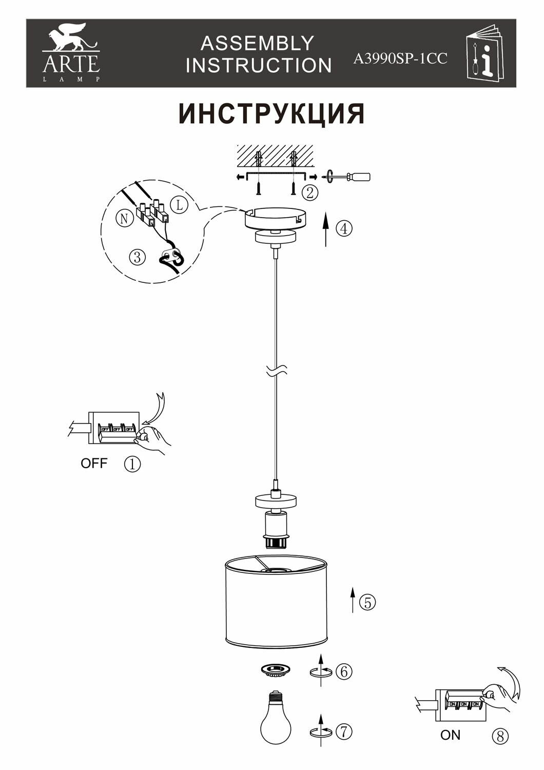 Подвесной светильник ARTE Lamp A3990SP-1CC