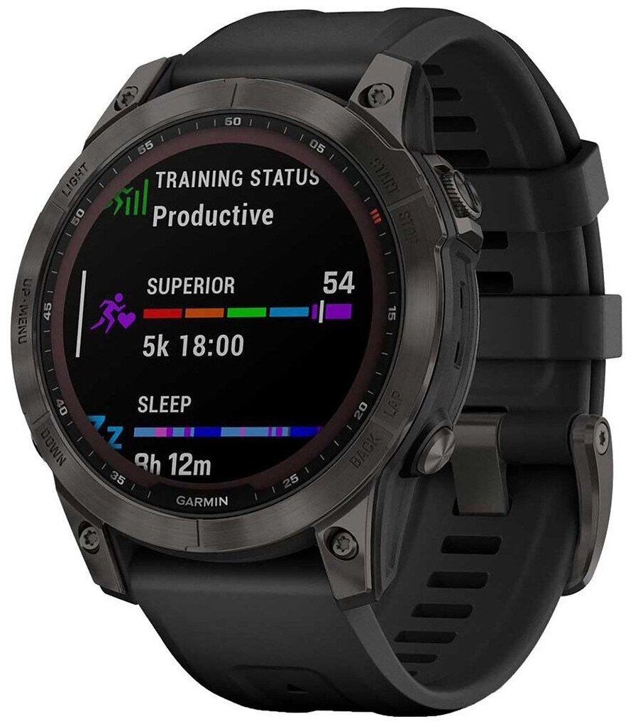 Смарт-часы GARMIN Fenix 7 Sapphire Solar, Carbon Gray, титановый серый DLC с черным ремешком, 010-02540-21