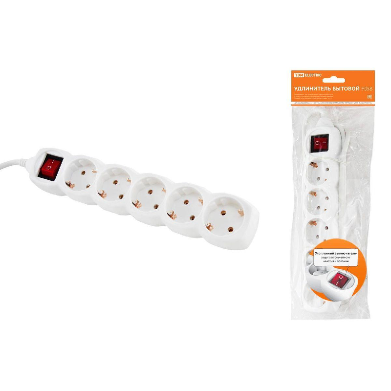 Удлинитель бытовой У05В выключатель, 5 гнезд, 3метра, с заземлением, ПВС 3х1мм2 16А/250В, TDM SQ1303-0121 (1 шт.)