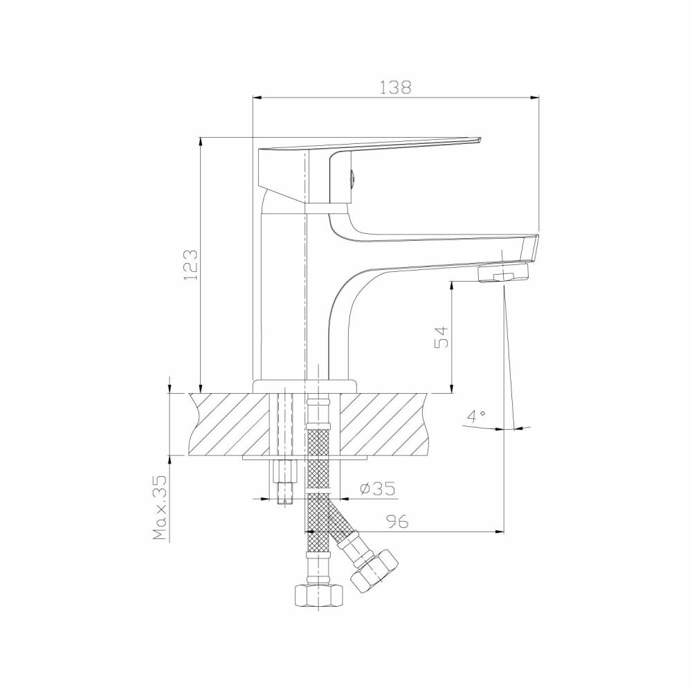 Смеситель одноручный (35мм) для умывальника монолитный, хром S35-11