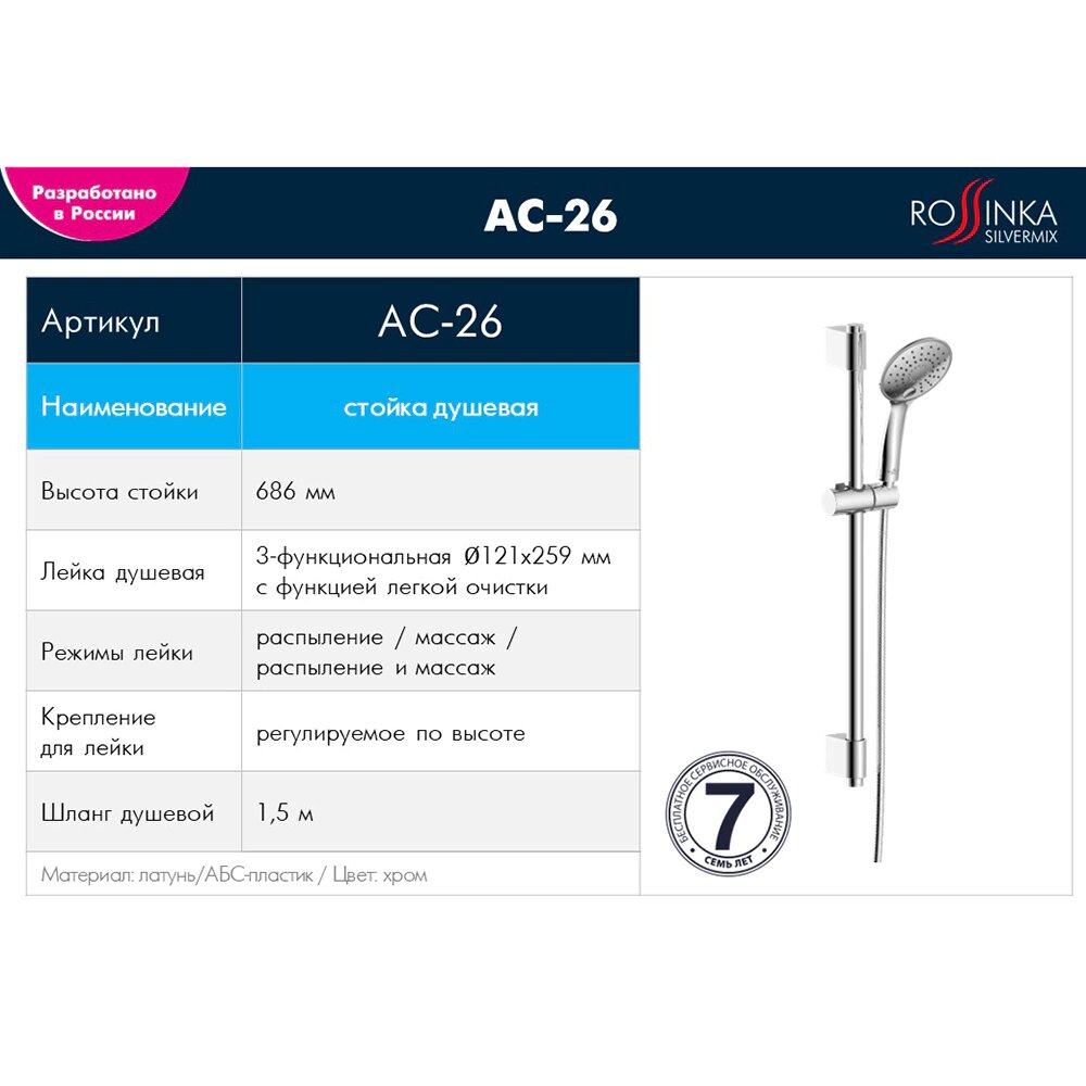 Стойка душевая Rossinka AC-26 с лейкой и шлангом
