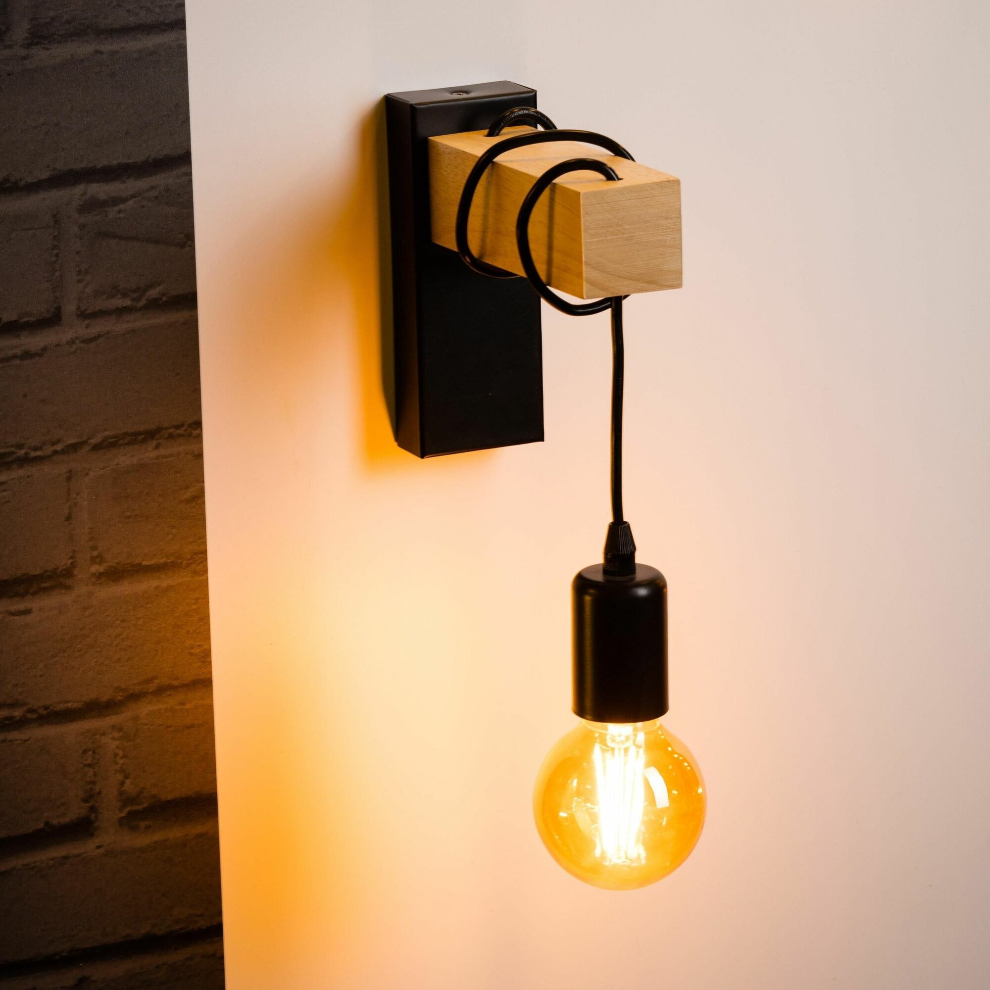 СохранитьБра настенный EGLO Townshend, дизайнерский светильник для гостиной, ретро лампа для освещения спальни, прихожей, с черным плафоном и проводом, натуральное дерево, E27, 60 Вт интересное: