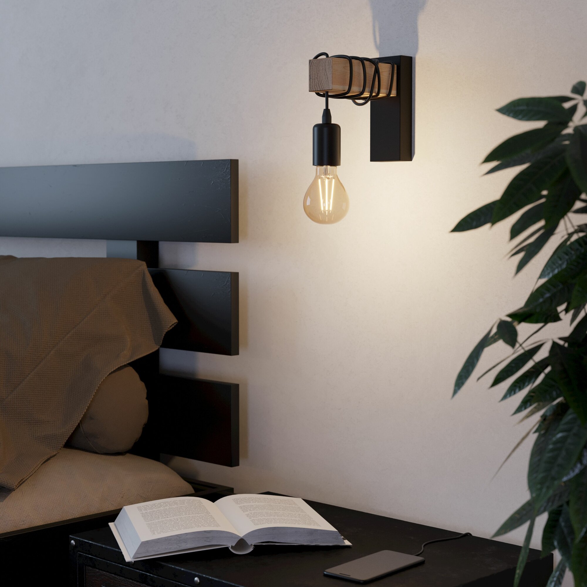 Настенный светильник Eglo Townshend 1xE27x60 Вт цвет чёрный/дерево