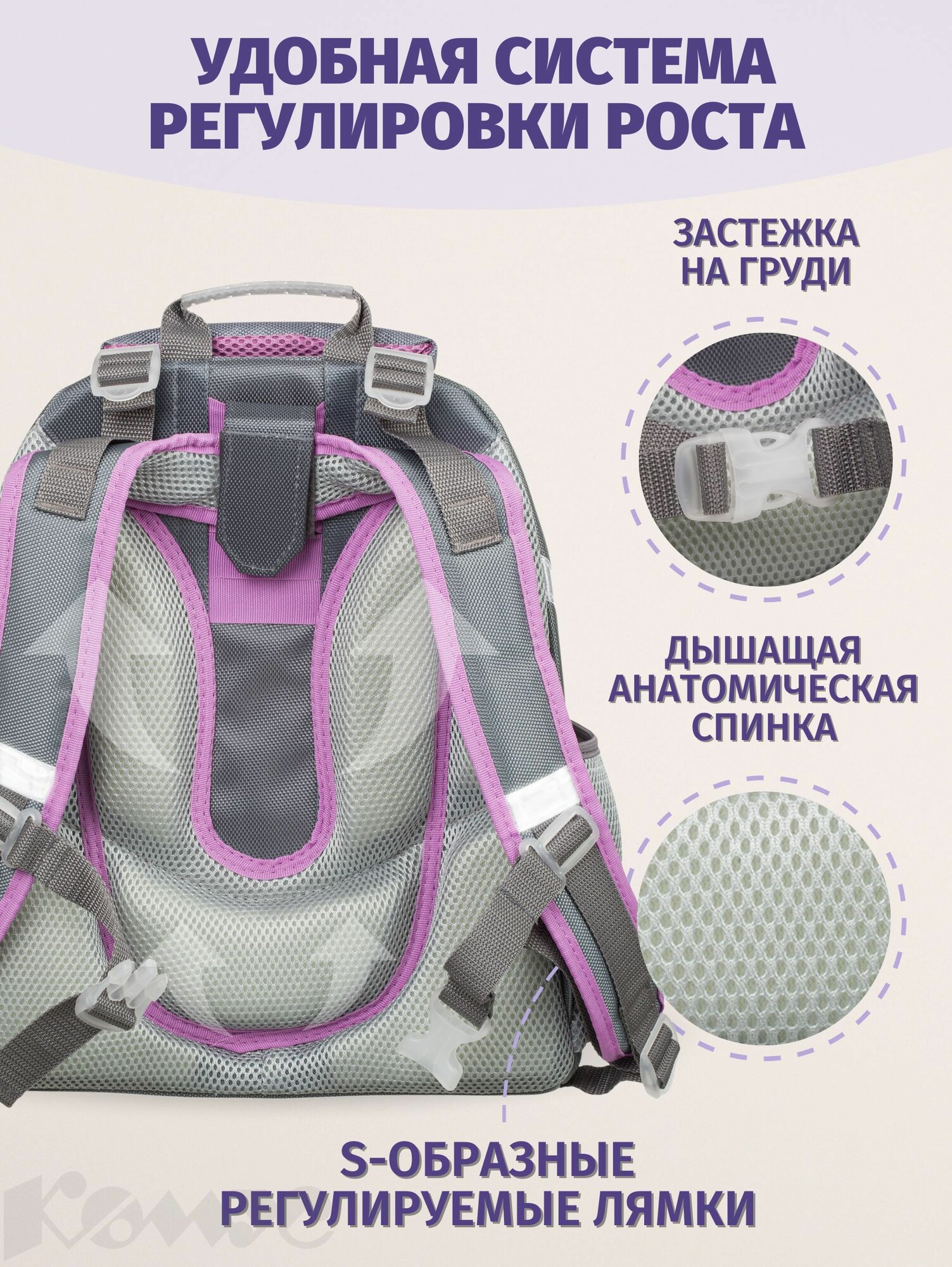 Рюкзак школьный №1 School Basic Enjoy, портфель анатомический для девочки, 2 отделения, 4 кармана