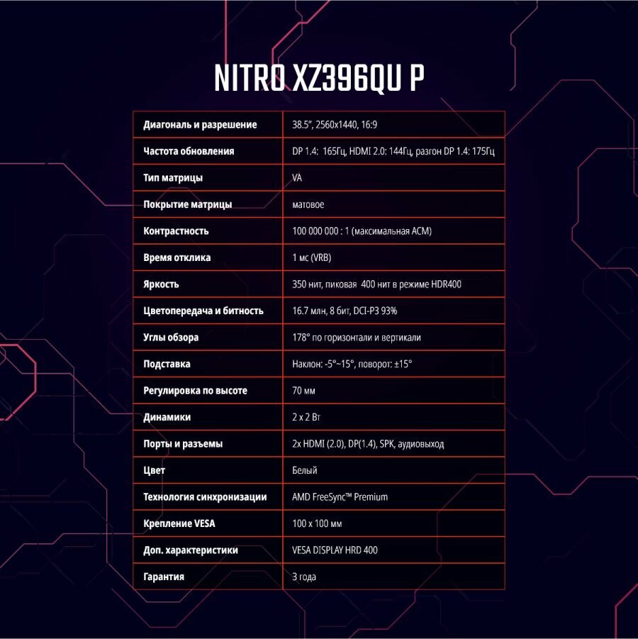 UM.TX6EE.P01 Монитор Acer Nitro XZ396QUPwmiipphx (UM.TX6EE.P01)