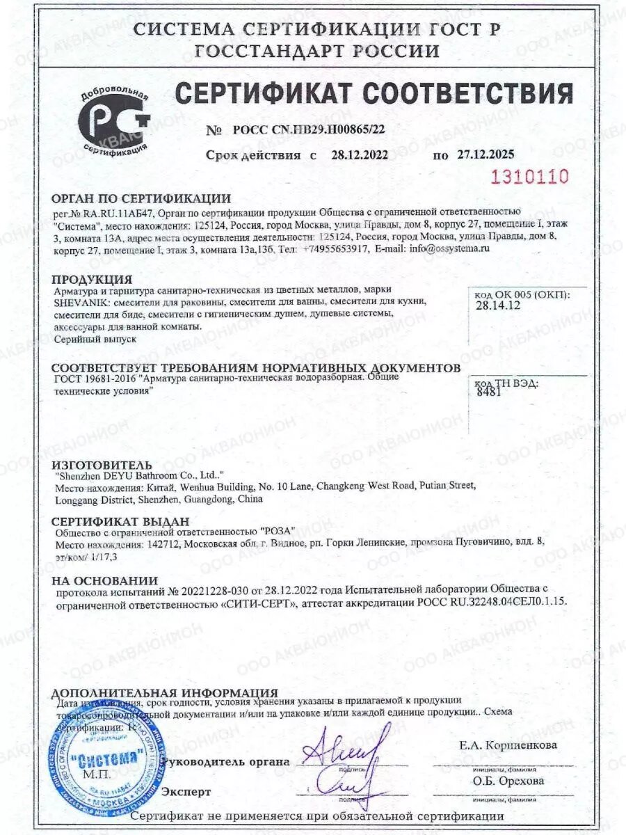 | Комплектация | душевая лейка / шланг для душа / кронштейн / верхний душ / душевая стойка / Смеситель |