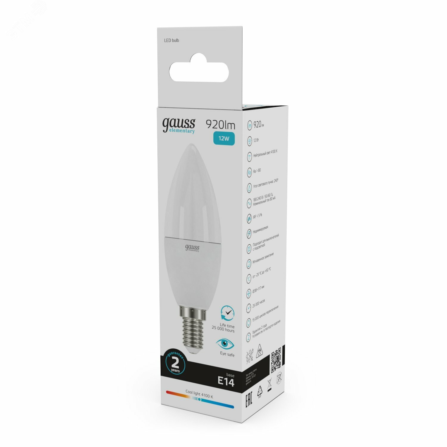 Лампа светодиодная LED 12 Вт 920 Лм 4100К белая Е14 свеча Elementary Gauss интересное:
