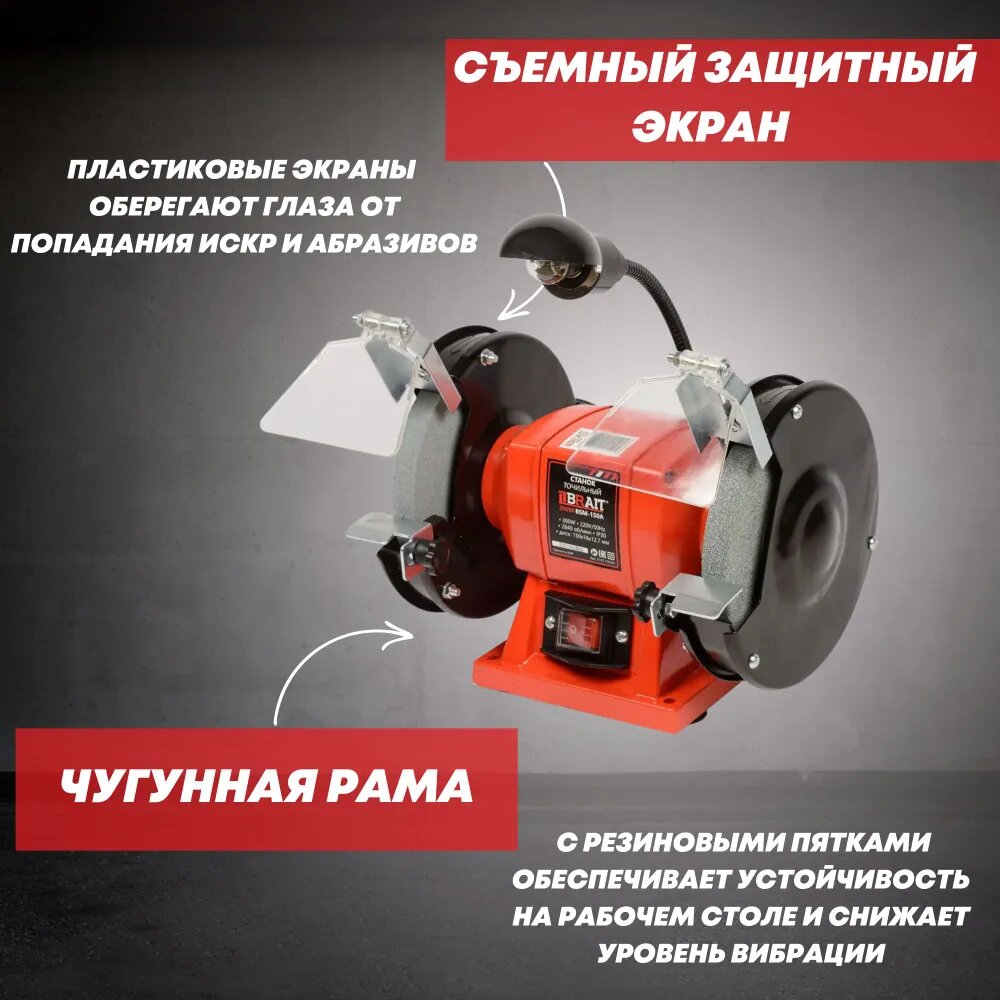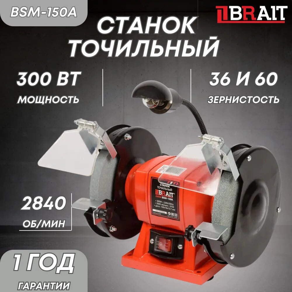Станок точильный BRAIT BSM-200А( с лампой) 500 Вт, (500Вт, 200х16х12,7, 2840 об/мин)
