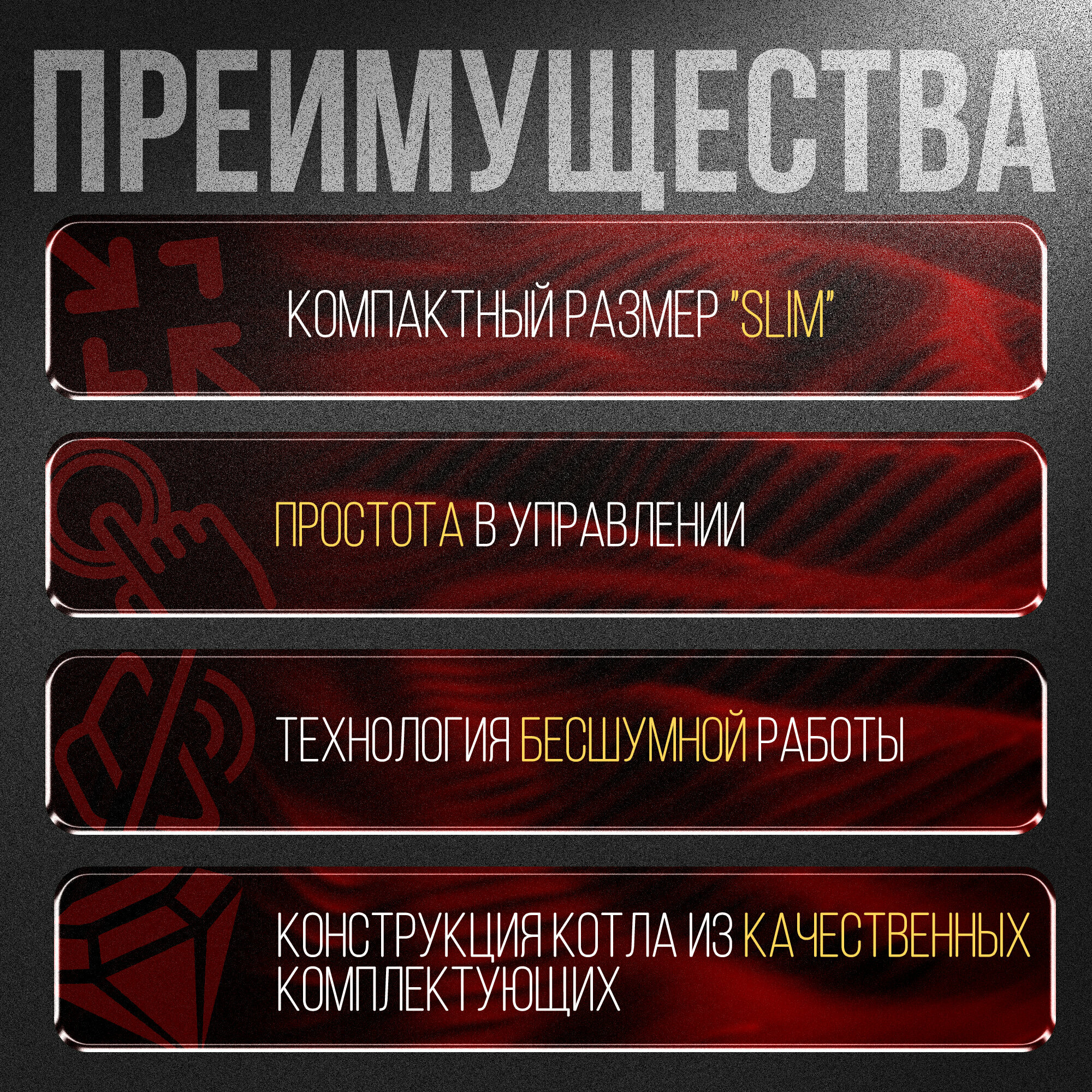 | Плюсы: | Компактный котел, занимает немного места в помещении. |