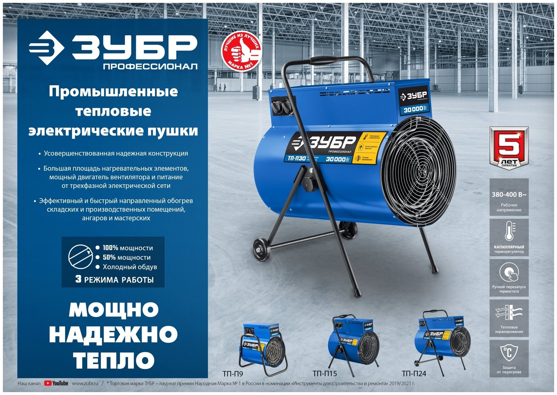 ЗУБР 15 кВт, электрическая тепловая пушка, Профессионал (ТП-П15)