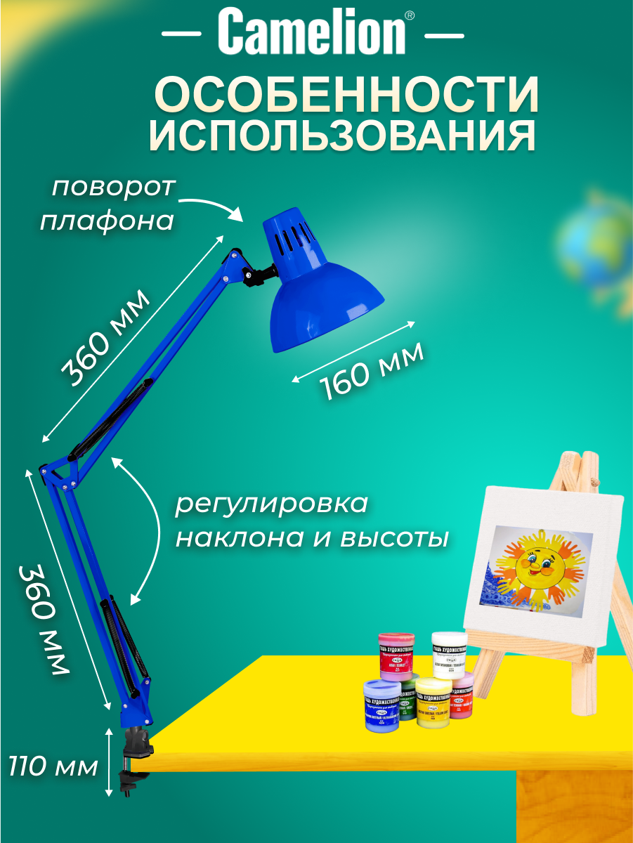 СохранитьЛампа настольная на струбцине Camelion KD-312 синий интересное: