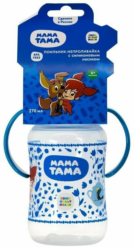 Поильник непроливайка мама тама с силиконовым носиком 6мес.+, 270 мл., цвет:синий