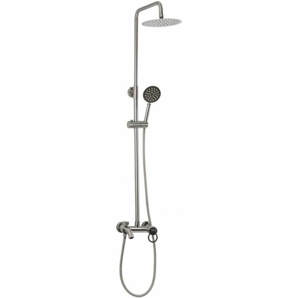 Душевой комплект (BRIMIX 3085 Смеситель + стойка душевая "тропический душ" с двумя лейками эконом матовый хром)