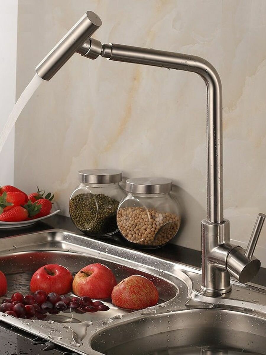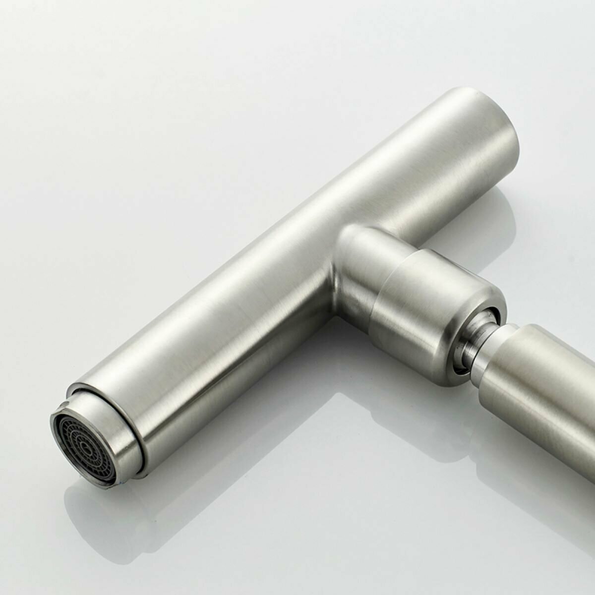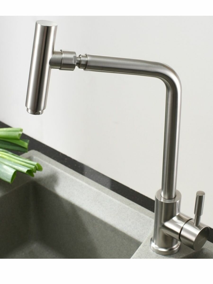 Смеситель для кухни с поворотным выдвижным изливом Haiba HB73304-2 нержавеющая сталь
