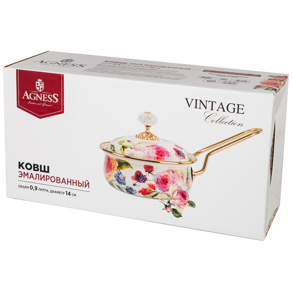 Ковш Agness эмалированный, серия royal garden 0,9л d=14 см подходит для индукцион. пл. (950-080)
